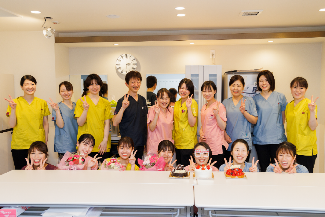人間関係当院はアットホームな雰囲気で、人間関係が抜群に良いことが自慢です♪職種・キャリアを越えて笑顔で楽しく働くことが出来るので、治療に集中して取り組むことができます!